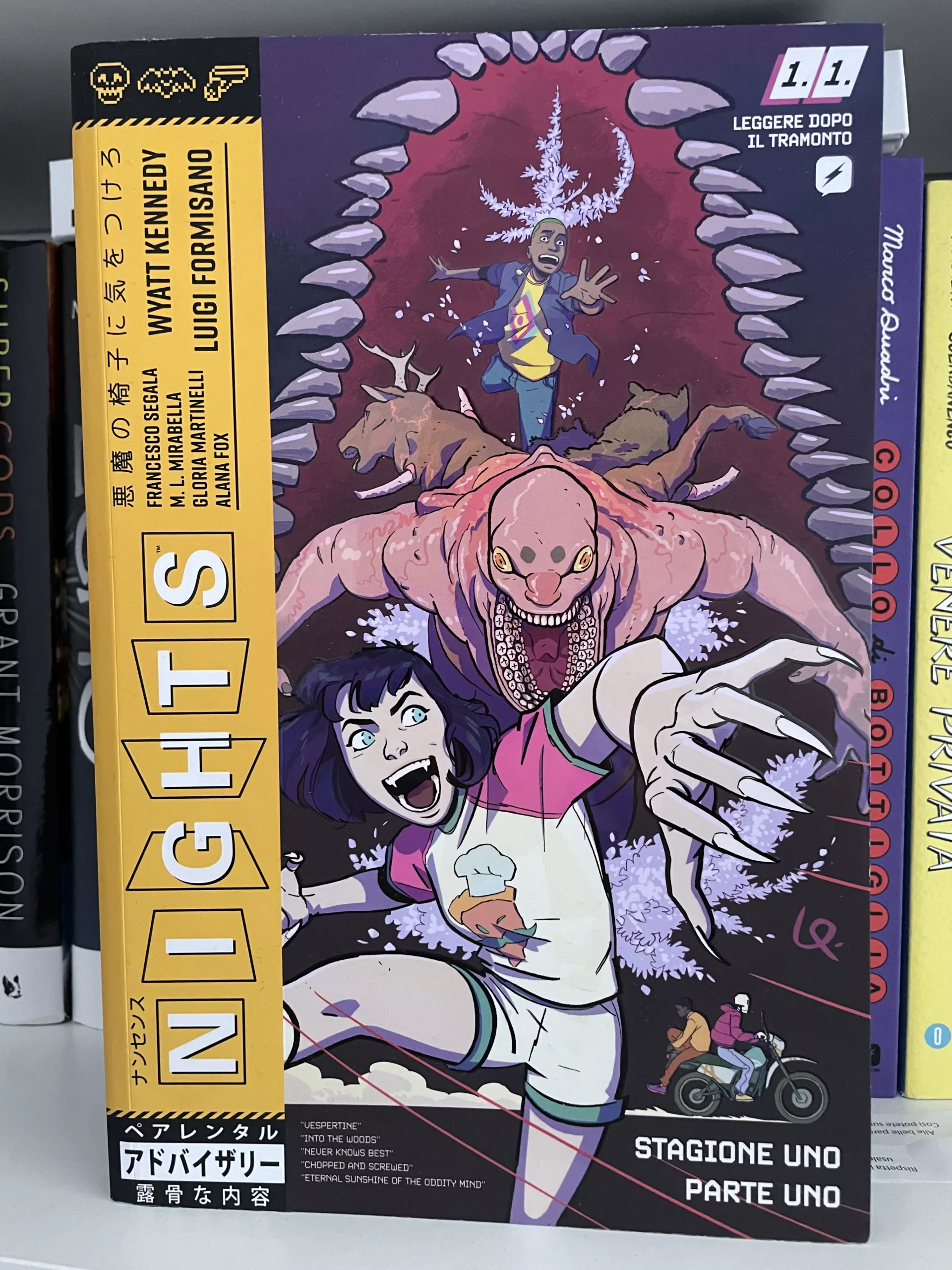 Come accennato in apertura, potremmo definire Nights come un contenitore in cui Wyatt Kennedy, Luigi Formisano e il resto del team creativo stanno riversando tutte le loro passioni più grandi, per dare vita a una storia che è davvero ricca sotto ogni punto di vista, e che ha il pregio di non perdersi in questa sua ricchezza. Comicità, dramma, azione e orrore si mescolano tra le sue pagine e ogni numero è una bella sorpresa nell’alternare momenti frenetici ad altri più rilassanti e romantici. Arrivati alla fine del primo volume è impossibile non chiedersi cosa succederà a Vince e agli altri e anche noi non vediamo l’ora di andare avanti con la lettura!
