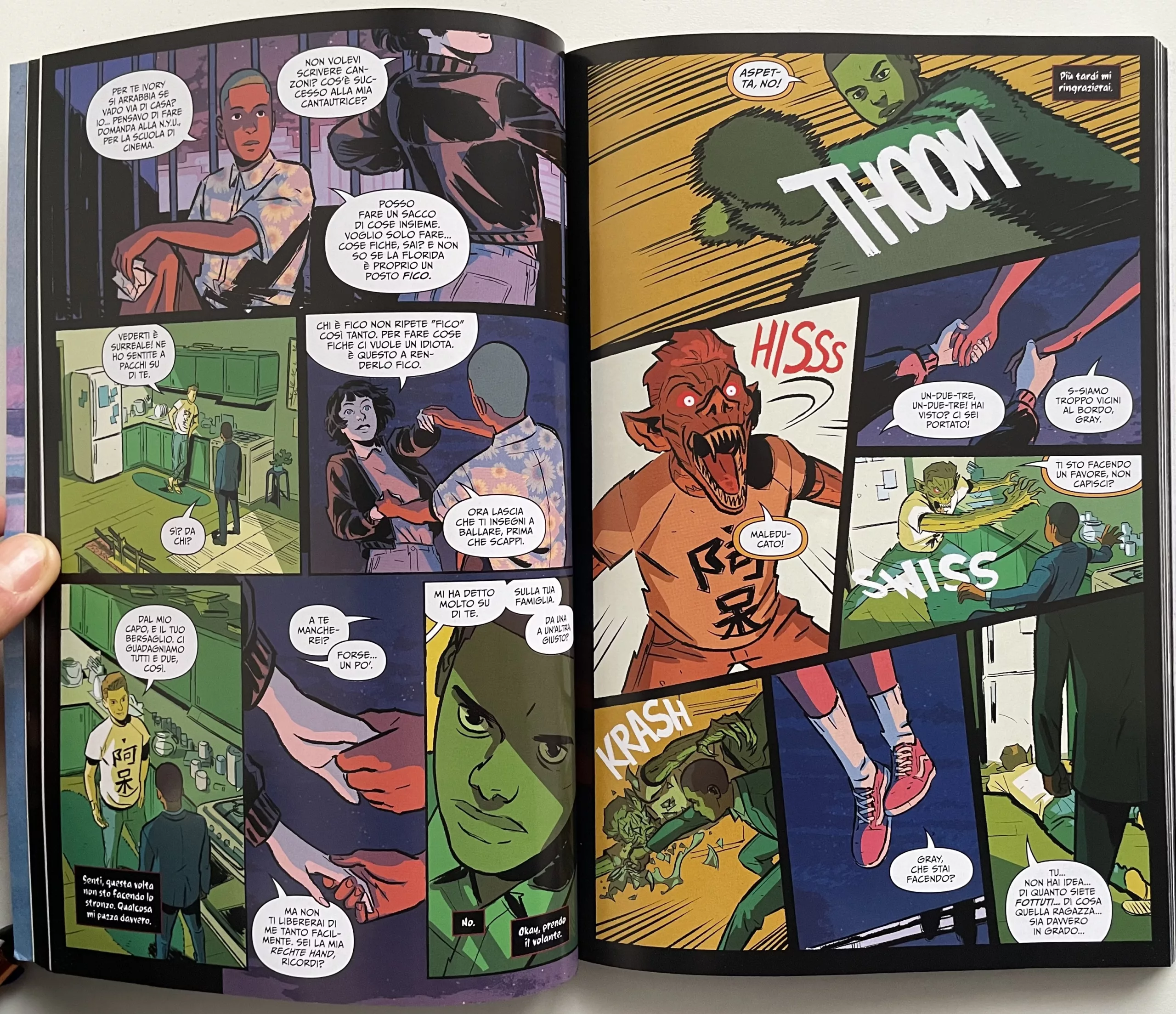 Con questa premessa si apre il primo numero di Nights, in cui facciamo subito la conoscenza di Vince, un ragazzo che si sta trasferendo in Florida per abitare in una casa alquanto pittoresca. Oltre a suo cugino Ivory, che lavora come sicario, gli altri coinquilini sono Matt, un fantasma scheletrico ossessionato dai videogiochi, e Gray, una vampira. In questo mondo umani e creature di ogni tipo convivono senza problemi e, dopo un primo impatto piuttosto scioccante, anche Vince sembra abituarsi alla sua nuova vita. Almeno fino a quando, qualche anno dopo, le cose iniziano a farsi complicate tra mostri che divorano persone e il passato di Gray che torna a galla portando tutta una serie di inquietanti conseguenze. Per non parlare di un futuro non ben precisato, ma che dal poco che vediamo appare alquanto catastrofico.