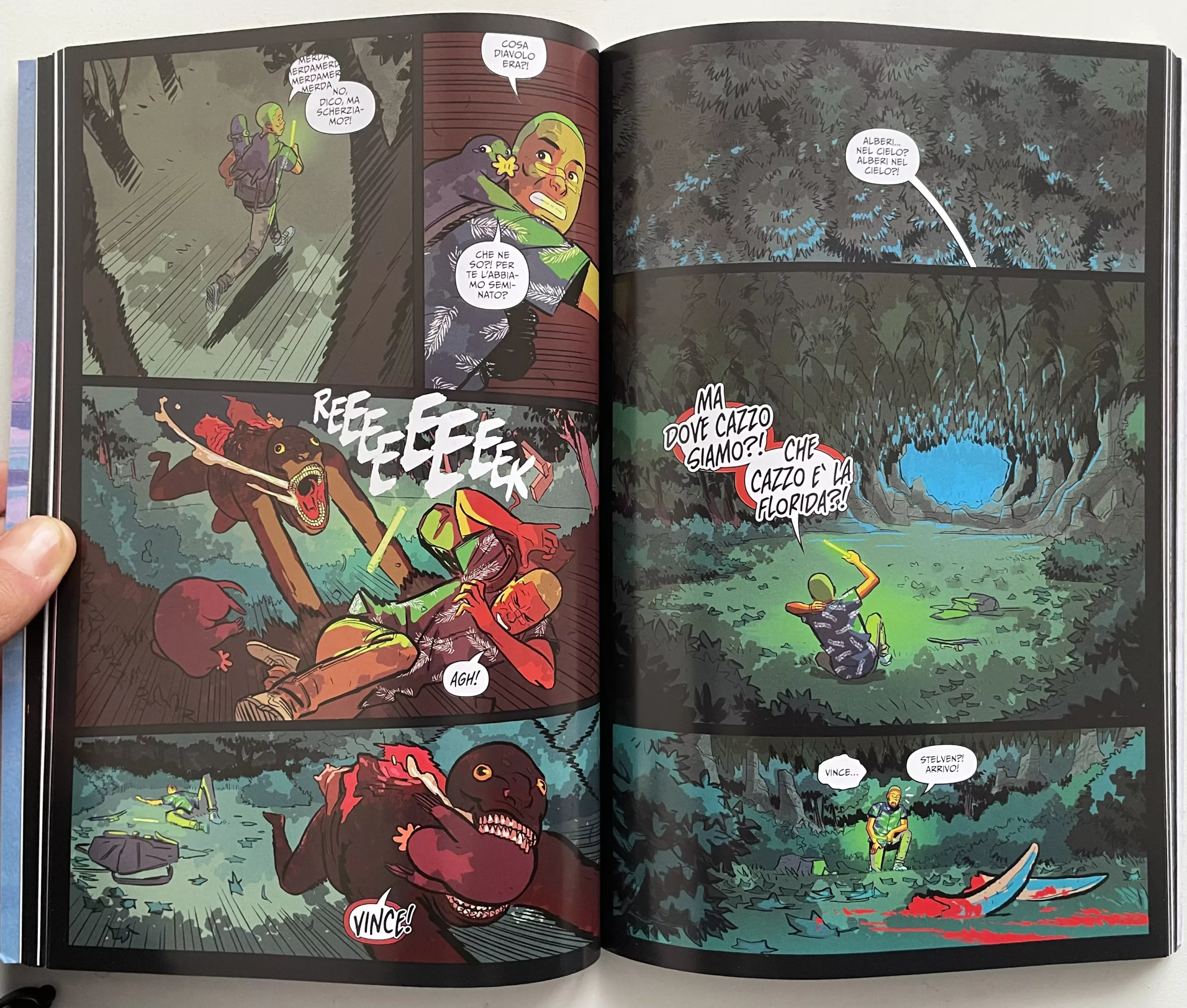 C’è sicuramente tanta carne al fuoco in questi primi cinque numeri di Nights. Tra fantasmi scheletrici che fanno jogging e vampire che consegnano pizze a domicilio, sia Vince che noi lettori capiamo subito che in questa versione della Florida si può trovare davvero di tutto. Molte delle creature che spesso potremmo considerare pericolose in realtà sono buone e tranquille, ma non significa che non ci siano anche creature spietate e inquietanti.