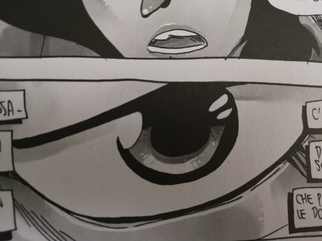 L’opera è intervallata da alcune pagine a bordo nero che ci raccontano la storia di una ragazza ora in forza alle YJS. Questa scelta precisa ci aiuta a capire che il narratore non è Zerocalcare, ma qualcun altro e i toni usati sono molto più scuri.