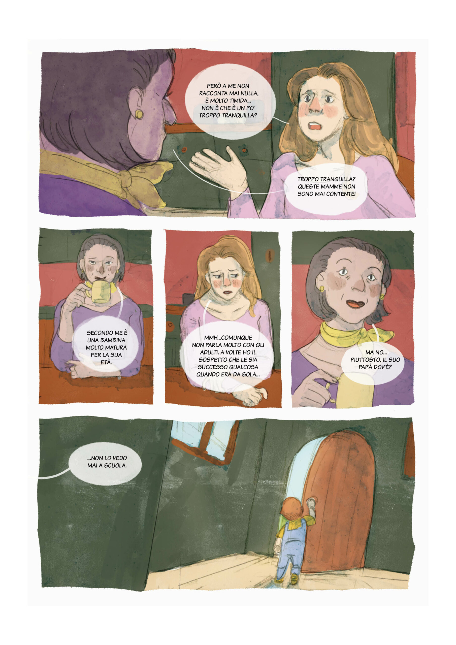 de “La città incantata” e “Ponyo sulla scogliera”. Lo stile richiama quello dell’artista francese Amélie Fléchais, autrice di L’uomo Montagnana, con i colori tenui e la presenza della matita che strizzano l’occhio all’illustrazione per l’infanzia.