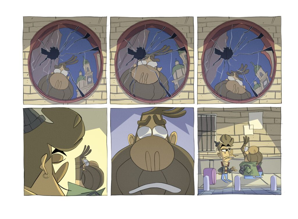 Una Direzione Giusta è un progetto per tutti: spazia dal dramma all’ironia slapstick, si ispira al mondo dell’animazione e costruisce il proprio racconto senza parole, se non nelle illustrazioni di chiusura dei capitoli, una sorta di memorandum ispirato dagli eventi appena trascorsi.