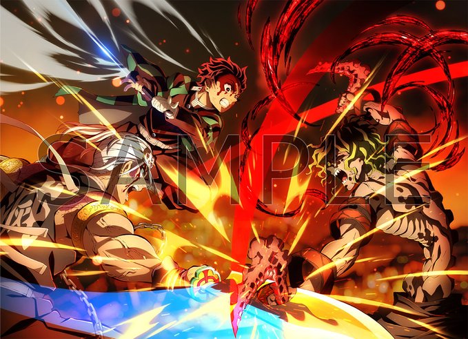 Questa lotta ha portato ad alcuni dei combattimenti e degli episodi più impressionanti dell’anime fino ad oggi. Quando Tanjiro e gli altri hanno combattuto sia contro Daki che contro Gyutaro i fan hanno potuto vedere di cosa sono veramente capaci i demoni dei livelli superiori. È per questo che i fan sono stati molto attratti da tutto ciò che è accaduto nella seconda stagione. E ora possono rivivere quell’arco narrativo con alcune nuove fantastiche illustrazioni mentre si preparano per il lancio di Blu-ray e DVD. Possiamo vedere le graphic art speciali prese dal Twitter ufficiale di Demon Slayer di seguito, la prima ci mostra Nezuko vs. Daki: