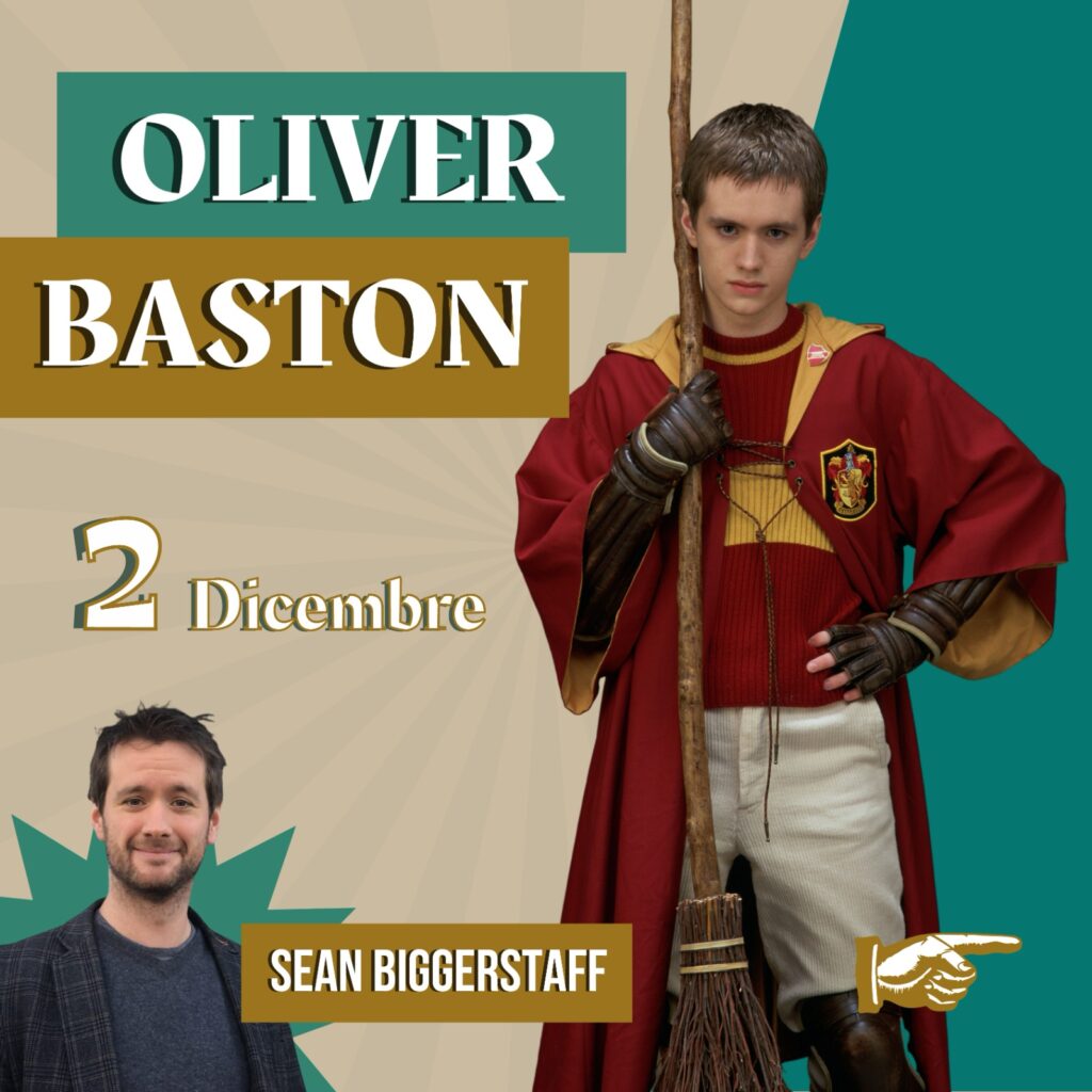 Save the date: Sabato 2 Dicembre sarà ospite da Oblivion Food and Drink per un meet and greet, Sean Biggerstaff, attore che ha interpretato Oliver Baston nei primi film della nostra amata saga.