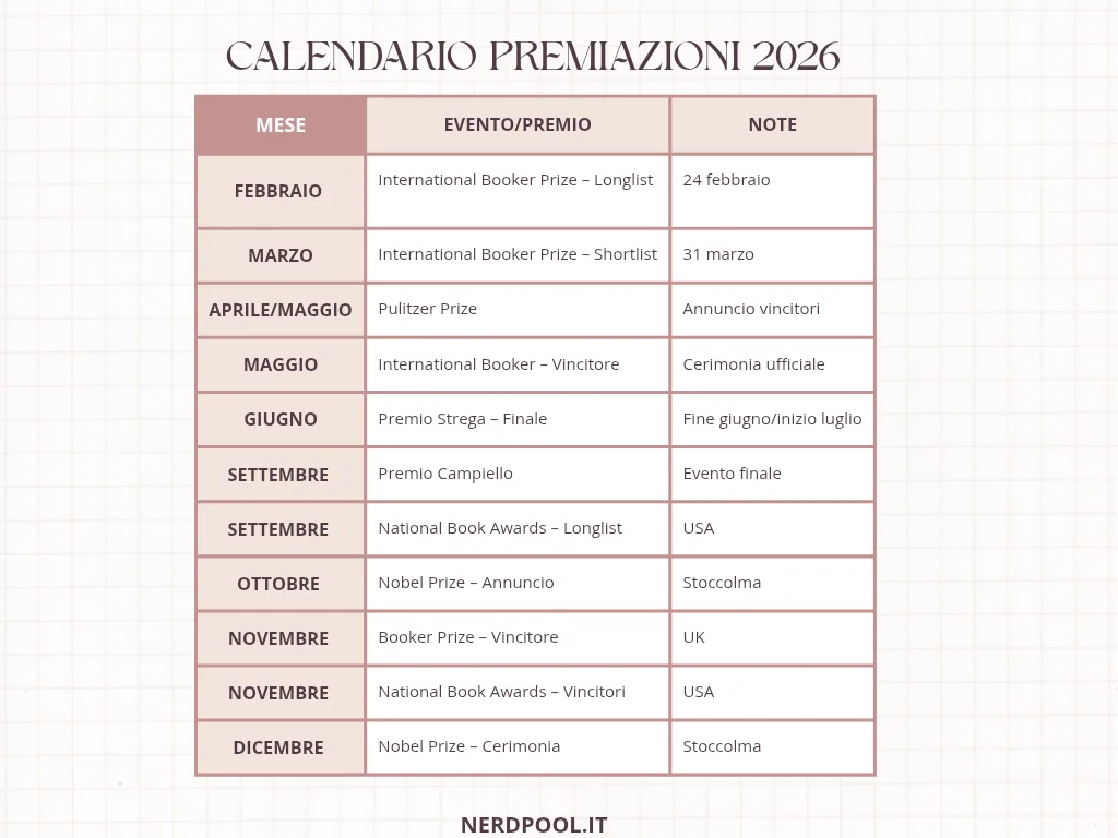 Il 2026 sarà un anno pieno di storie da scoprire e premi da seguire, dal Nobel ai grandi italiani come lo Strega e il campiello. Che tu legga per passione, studio o lavoro, questi premi sono porte aperte su mondi nuovi, occasioni per conoscere voci che lasceranno il segno.