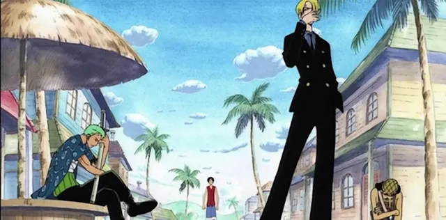 Quando invece Nami ha bisogno del supporto di tutta la ciurma, Luffy e gli altri non si tirano indietro, dimostrandosi pronti a combattere per la loro compagna. Questa scena che ci viene mostrata all’interno del live action, è praticamente identica a quella presente nell’anime e nel manga. Sanji è perfettamente di fronte a noi, affiancato da Zoro per poi passare a Usopp e a Luffy in lontananza. In One Piece l’amicizia e l’unità gruppo sono sempre state un elemento fondamentale, e qui possiamo constatare (considerando anche la situazione in cui si verifica la scena) che è a tutti gli effetti un dato di fatto. Anche tutto ciò che circonda i personaggi è identico alla scena originale: paesaggio, oggetti scenografici ecc.
