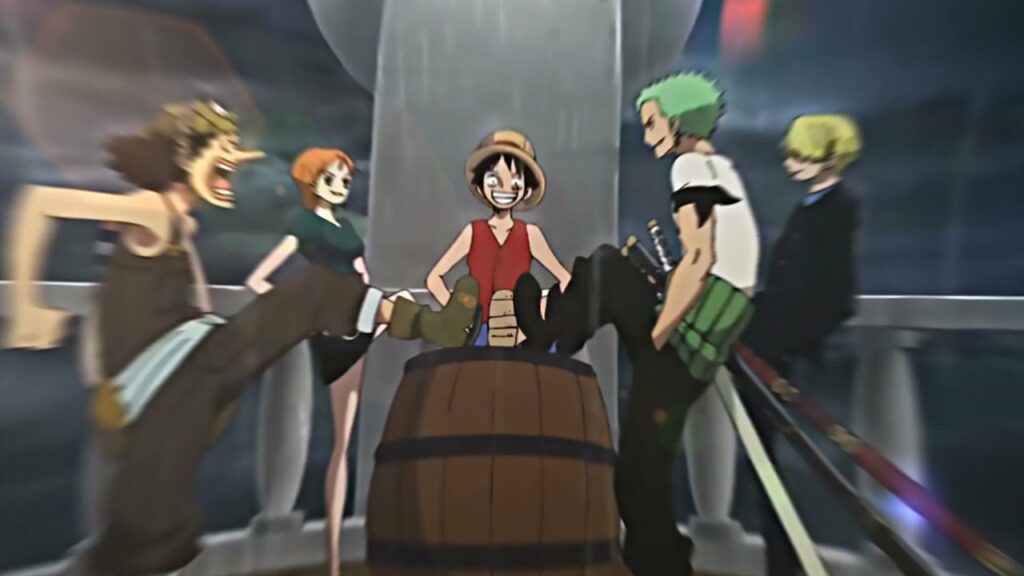 Se c’è una cosa che non manca in One Piece, sono i sogni, a partire da quello di Luffy: “diventare il Re dei Pirati” per l’appunto. Molti dei sogni che hanno i nostri protagonisti vengono pronunciati e ribaditi quando la ciurma è sul punto di introdursi e navigare nella Rotta Maggiore, per avventurarsi nel pieno delle loro avventure. Anche questa è una scena Identica all’originale mostrata sia tra le pagine del manga che nell’anime.