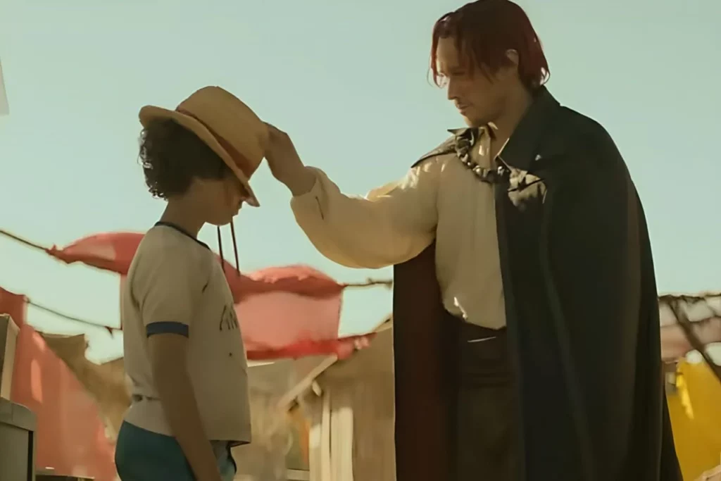 Cominciando dai primi episodi della serie, la prima scena che possiamo osservare meglio è quella tra Luffy e Shanks, quest’ultimo dona il suo amato cappello al nostro protagonista che promette di diventare Re dei Pirati; nel corso della serie notiamo un’elevata attenzione verso l’accessorio in questione dal valore per lui inestimabile. Questo cappello di paglia (da cui poi prendono il nome anche i compagni di Luffy: “La Ciurma di Cappello di Paglia”), pare essere parecchio importante già da questo live action, ma nel corso del manga che ovviamente ha portato la storia di Luffy ad uno stato più avanzato, è protagonista di molte teorie sul futuro della storia e di alcuni dei misteri ancora irrisolti.