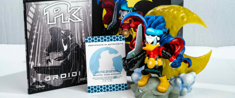 Su entrambi gli oggetti da collezione – in formato 21,7×23,5cm con profondità 16,3cm – è presente l’incisione sul fondo con la firma dell’autore, accompagnata dal certificato di autenticità numerato a mano (per l’Exclusive Edition, inoltre, il certificato ha la firma originale dell’autore). All’interno della box che racchiude la preziosa statua, poi, è contenuta anche una versione inedita di Droidi, avventura “pikappika” del 2018 firmata da Alessandro Sisti e Claudio Sciarrone, a cui si unisce il making of della statua.