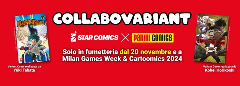 Panini Comics e Star Comics combinano le loro forze in un team-up senza precedenti: due case editrici e due Maestri indiscussi del manga shonen danno vita a due copertine variant imperdibili, in arrivo in Italia in autunno. Kohei Horikoshi (My Hero Academia) e Yûki Tabata (Black Clover) si omaggiano a vicenda realizzando due cover d’eccezione, a partire da mercoledì 20 novembre in fumetteria e a Milan Games Week & Cartoomics2024 presso gli stand Panini Comics e Star Shop.