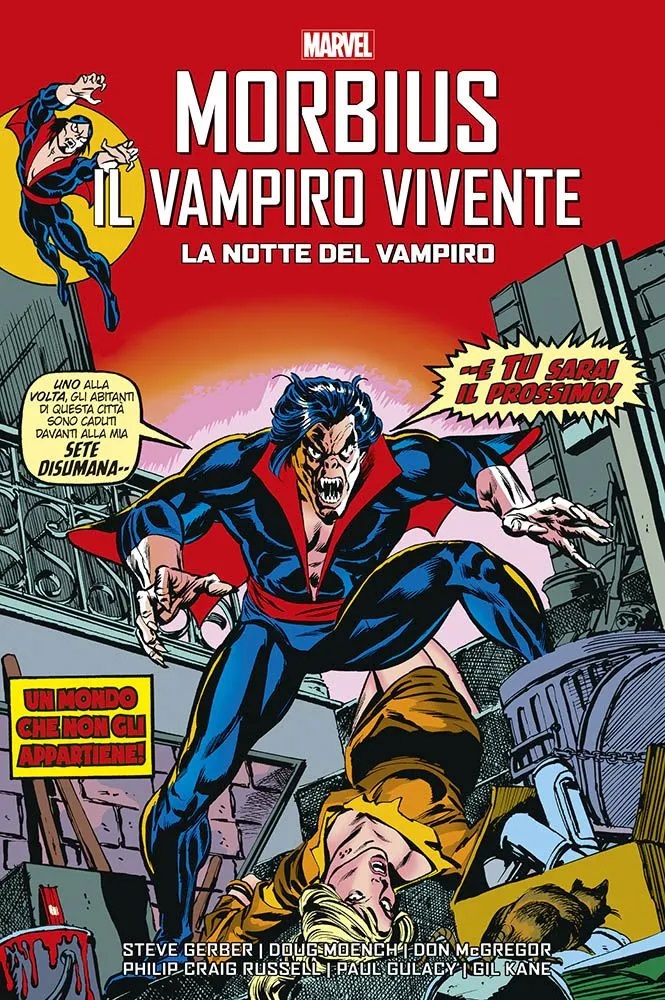 Morbius il Vampiro Vivente – La notte del vampiro,che raccoglie le due spettacolari serie a lui dedicate pubblicate negli anni 70 Adventure into Fear e Vampire Tales, è il volume ideale per chi vuole proseguire nel recupero delle storie classiche del personaggio. Un viaggio agghiacciante nel mondo dell’orrore e del sovrannaturale raccontato da grossi calibri del comicdom americano, tra cui Mike Friedrich, Steve Gerber, Doug Moench, Don McGregor, P. Craig Russell, Paul Gulacy, Gil Kane e Frank Robbins.