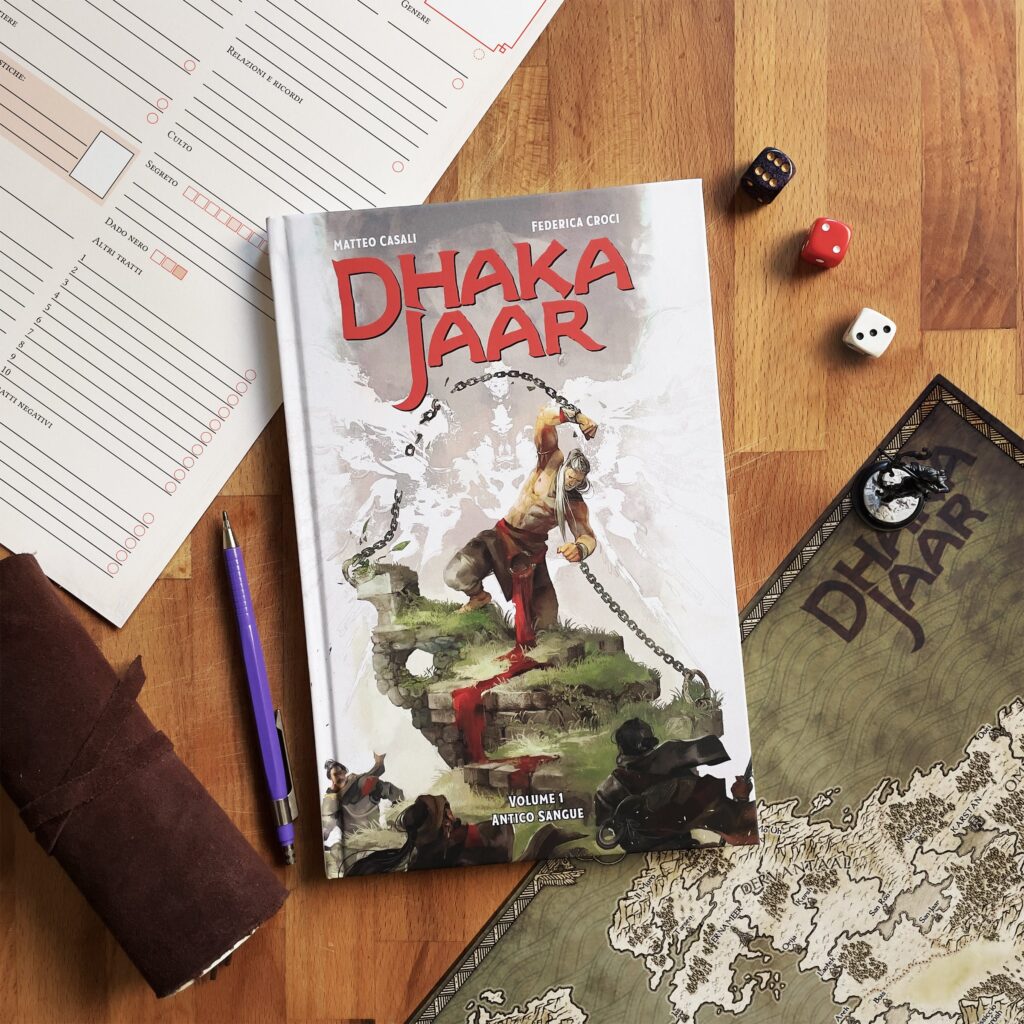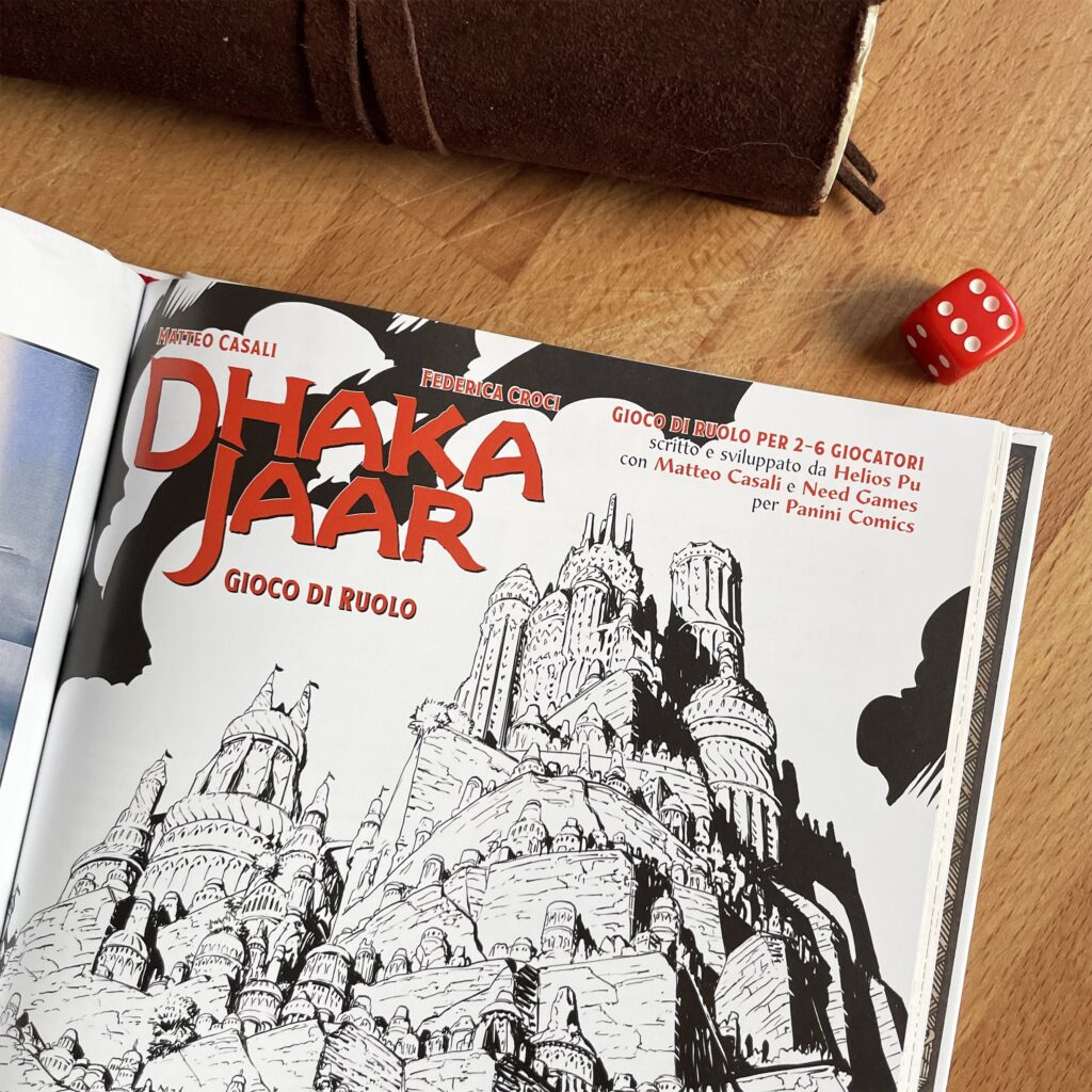 Leggendo il fumetto, il lettore potrà calarsi immediatamente nel mondo di Dhakajaar ed esplorarne l’ambientazione prima di approcciarsi al regolamento del gioco di ruolo. L’esperienza immersiva della graphic novel permette infatti di applicare con facilità l’innovativo sistema di gioco DJ System scritto dal creativo Helios Pu insieme a Matteo Casali e Need Games per Panini Comicse corredato dalle illustrazioni di Francesco Biagini. Con la possibilità di coinvolgere dalle 2 alle 6 persone e, grazie al regolamento, la mappa e le schede personaggio, ogni lettore/giocatore potrà così usare la propria immaginazione per diventare un avventuriero, un eroe o una canaglia, e andare alla scoperta del mondo di Dhakajaar.