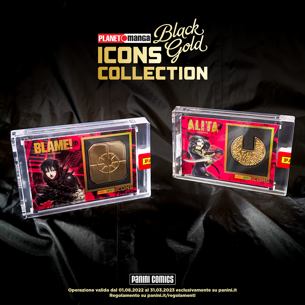 Da Alita ad L’Attacco dei Giganti, fino a Fullmetal Alchemist e Berserk, ciascuna card verrà messa in palio mensilmente su Panini.it dal 1 agosto: si parte con Alita, per proseguire con Blame! a settembre… e così via fino a marzo 2023! Ogni card è rossa, corredata da un’icona dorata con il simbolo del personaggio a cui è dedicata, la cui storia è raccontata sul retro. A custodirla, un case di plastica a chiusura magnetica con sigillo Panini.