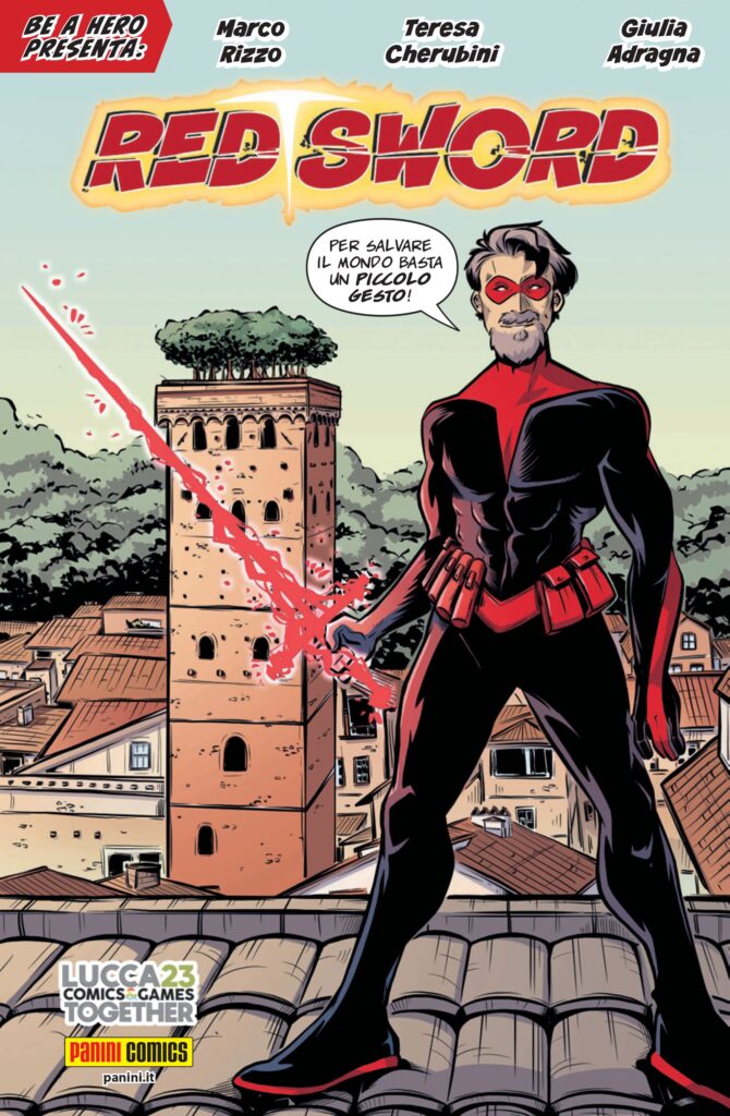 “Donare il sangue è uno dei gesti più generosi e in fondo semplici che una persona può fare, quindi lavorare a un fumetto su questo tema è stato molto stimolante”, commenta Teresa Cherubini. “Donare il proprio sangue connette a tutto il mondo e ci rende supereroi senza che nessuno lo sappia, con i nostri vestiti di tutti i giorni ma sapendo che dentro di noi c’è un RED SWORD. La mia speranza è che i Red Sword del mondo vengano ispirati anche in piccola parte grazie ai testi di Marco Rizzo e alle mie tavole. Spero di esserci riuscita, ma se anche solo un ragazzo vorrà diventare come Red Sword per me sarà già una ‘missione compiuta’!”