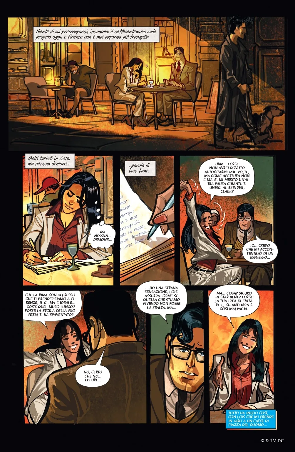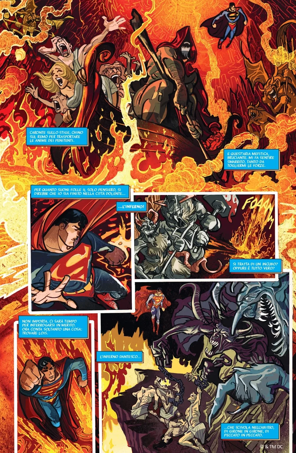 Con questo racconto, gli acclamati autori di fumetti italiani Marco Nucci e Fabio Celoni celebrano l’incredibile storia dell’Ultimo Figlio di Krypton. Nel 2021, Clark Kent e Lois Lane sono a Firenze, la città natale del Sommo Poeta Dante Alighieri, nel 700° anniversario della sua morte. All’improvviso, la terra si spacca e Lois e altri astanti sono inghiottiti in un abisso che sembra condurre direttamente all’Inferno. L’unica speranza di Superman contro gli eserciti di Lucifero è legata a una formula, presente nelle visioni di Dante, che sembra perduta per sempre!