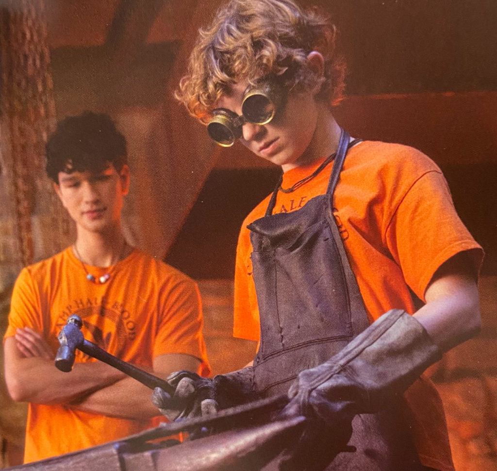 Luke mette alla prova le abilità di Percy nella forgiatura. Nel trailer, Luke osserva che “dobbiamo scoprire in cosa sei bravo”, il che rende probabile che questo sia un test per vedere se Percy ha legami con Efesto (il dio della forgiatura).