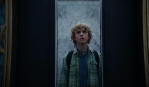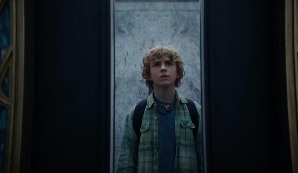 Il trailer si apre con il Percy di Walker Scobell che prende un ascensore da solo. Come si evince dal fatto che Percy indossa la collana Camp Half-Blood di Annabeth, questo avviene nella seconda parte della stagione, dato che lei gli regala l’accessorio nel capitolo 20 de Il ladro di fulmini prima della sua battaglia con Ares.