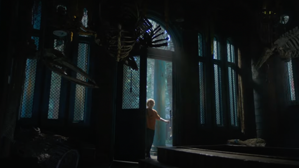 Al minuto 0:09 dell’ultimo trailer di Percy Jackson, si vede il Percy di Walker Scobell entrare nella capanna di Poseidone al Campo Mezzosangue. L’alloggio del dio del mare è notevolmente impolverato a causa del fatto che Poseidone non ha avuto un figlio semidio da quasi un secolo.