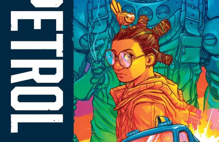 Petrol Head, di Rob Williams (Suicide Squad, Amazing Spider-Man, Judge Dredd) e Pye Parr (2000 AD, The New Gods), è un fumetto che parla di cambiamento climatico, di obsolescenza, di controllo dell’opinione pubblica tramite gli eventi mediatici… attraverso la storia di un robot che pilota auto da corsa. Un bestione grande grosso, sgraziato, puzzolente per il fumo e i gas di scarico, che trova sul suo cammino una ragazzina braccata perché custodisce il segreto che potrebbe salvare il mondo.