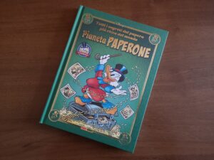 Per il settantacinquesimo anniversario della nascita del papero più ricco del mondo, la divisione disneyana di Panini Comics ha realizzato una splendido volume da libreria che raccoglie le storie, già comparse sul settimanale, del ciclo Pianeta Paperone.