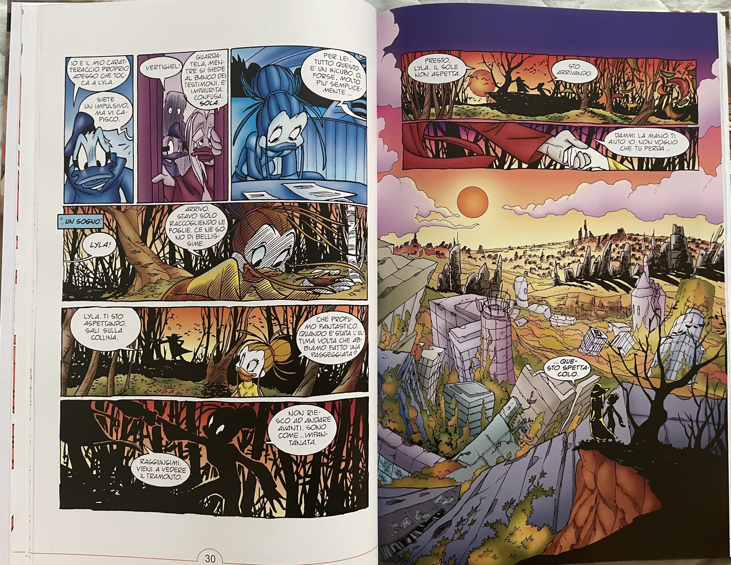 Dopo Trauma, potevamo facilmente immaginare quale sarebbe stata la storia successiva della prima storica serie di PK, PKNA, a ricevere una riedizione in formato Deluxe. Frammenti d’autunno è un episodio rimasto nel cuore dei vecchi lettori e che resta uno dei picchi narrativi e artistici della produzione disneyana nostrana. Bruno Enna ai testi e Claudio Sciarrone ai disegni hanno realizzato una storia perfettamente inserita nella continuity, ma anche leggibile a se stante, che tratta in maniera eccellente diverse tematiche importanti.