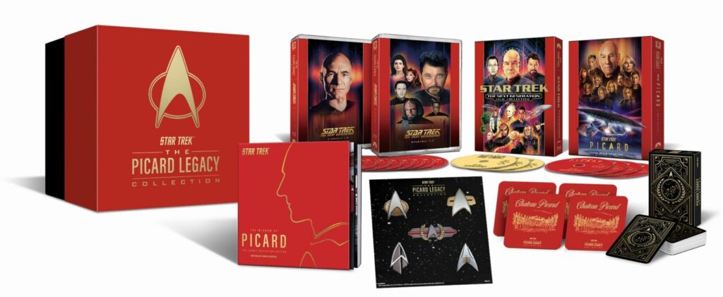 Con oltre 35 ore di contenuti speciali, film e serie, il cofanetto include “Star Trek: The Next Generation – Stagione 1-7”, “Star Trek: Picard – Stagioni 1-3”, Star Trek: Generazioni, Star Trek: Primo Contatto, Star Trek: La Nemesi, e Star Trek: L’insurrezione. Il cofanetto include inoltre un’edizione esclusiva del libro The Wisdom of Picard con artwork e nuove quote, insieme a un mazzo di carte da gioco, i magneti di tutti i distintivi del Capitano Picard e quattro sottobicchieri personalizzati Chateau Picard.
