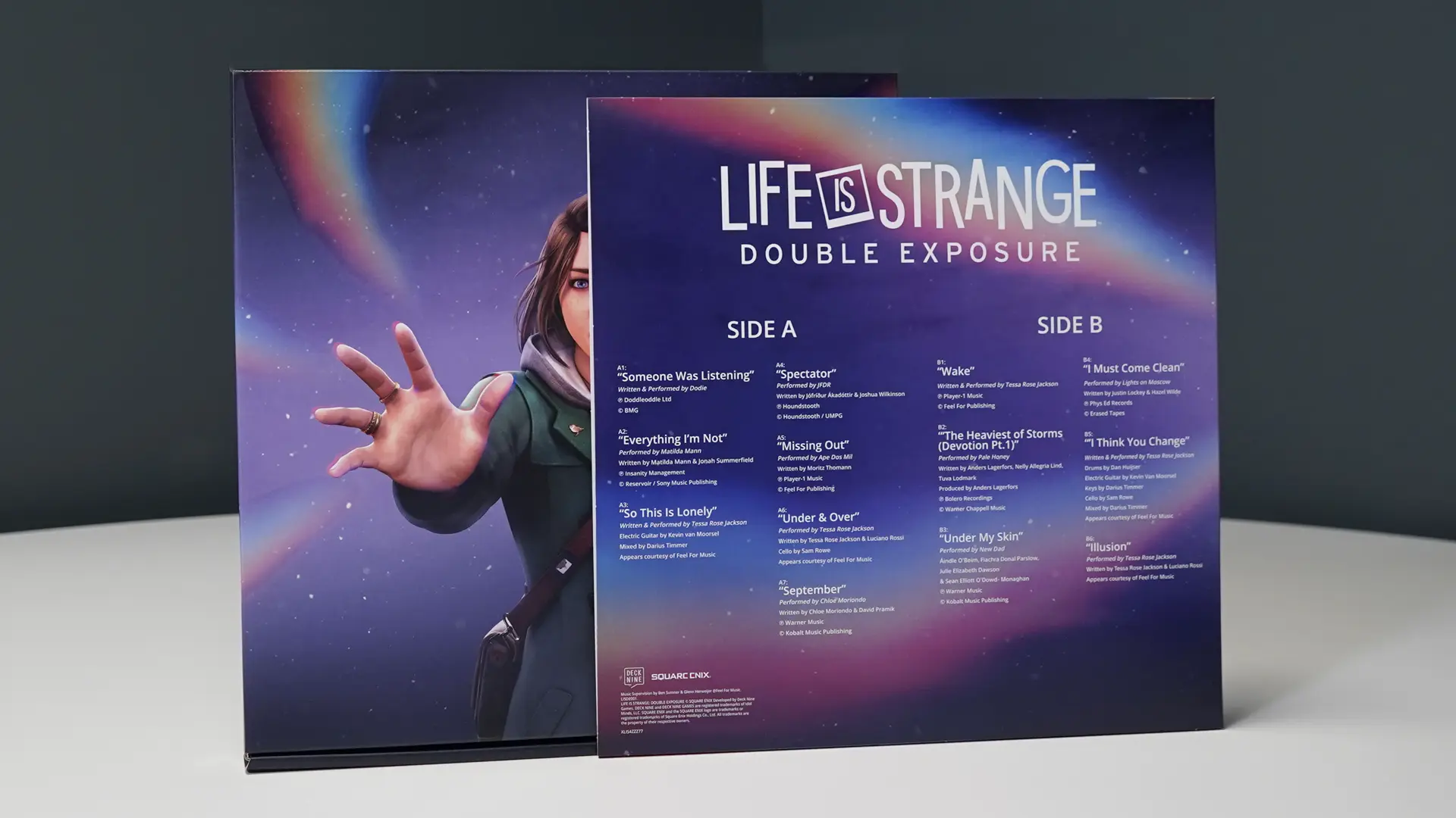 L’edizione fisica su vinile della colonna sonora è disponibile esclusivamente nella Collector’s Box di Life is Strange: Double Exposure. La Collector’s Box sarà venduta separatamente e non dispone del gioco, ma include la colonna sonora su 33 giri, un mini-artbook di 32 pagine, quattro cartoline di 30 cm a due facce e una replica della spilla a forma di gufo che Max Caulfield indossa nel gioco. La Collector’s Box di LIFE IS STRANGE: DOUBLE EXPOSURE può essere acquistata sul sito: https://na.store.square-enix-games.com/life-is-strange_-double-exposure-collector_s-box