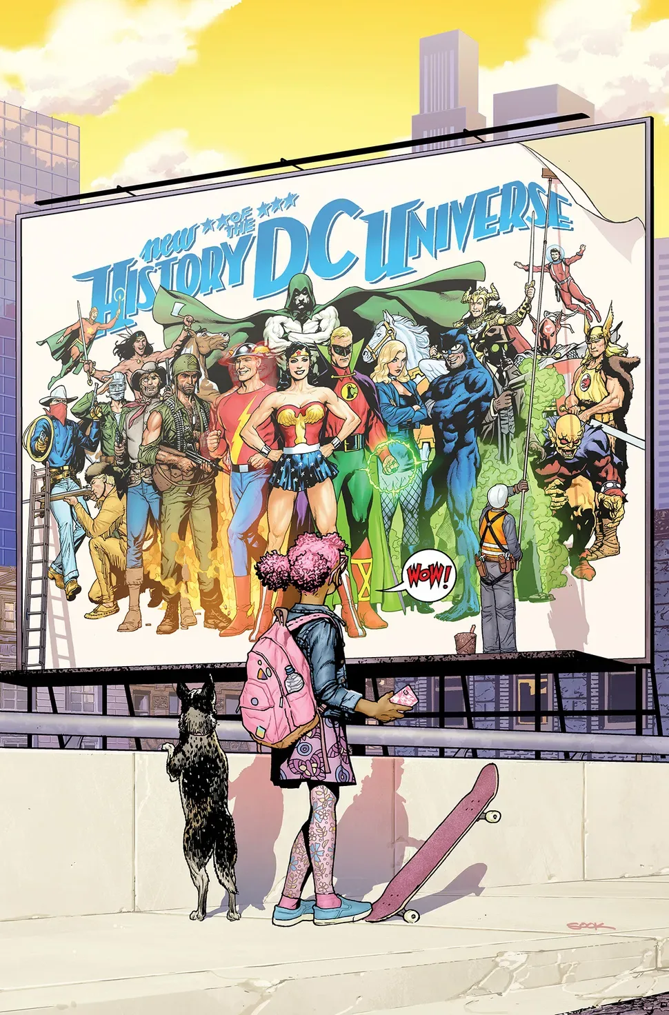 Tra le varie copertine del numero, spicca la cover principale di Chris Samnee e le variant cover di Dan Mora, Ryan Sook, Mike Cho e Stanley ‘ArtGerm’ Lau, oltre a una speciale copertina wrap-around di Sook e alla prima di una serie di copertine wrap-around di Scott Koblish che raffigurano praticamente tutti i personaggi DC di sempre in ordine di epoca raffigurati in ogni numero.