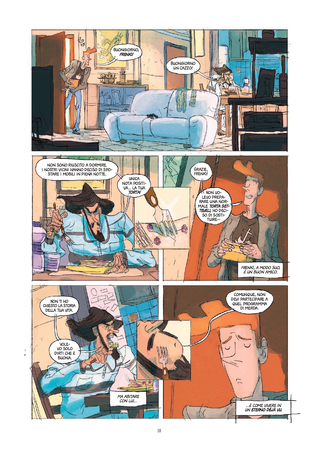 Abbiamo parlato della profondità con il quale Ramiro affronta determinati temi ma non è tutto. L’opera di Frekt e Albanese, infatti, ha una forte impostazione comica e citazionista. Nonostante la delicatezza degli argomenti, riesce spesso ad alleggerire la lettura con trovate comiche veramente interessanti, merito soprattutto del personaggio di Frankie, vero comic relief del romanzo.