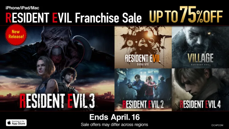Per celebrare il lancio, Resident Evil 3 è in promozione per un periodo di tempo limitato. Inoltre, Resident Evil 2, Resident Evil 4, Resident Evil 7 biohazard, e Resident Evil Village sono attualmente in vendita sull’App Store, garantendo a questi giochi Resident Evil preferiti dai fan prezzi scontati fino al 75%.