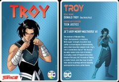 La serie mette in evidenza gli eroi di Terra-11 che compongono la squadra dei Teen Justice, tra cui Kid Quick, Aquagirl, Klarienne the Witch Girl, Supergirl, Robin, Troy e Raven. Ogni carta collezionabile, rivela informazioni di base su ciascun personaggio, il loro vero nome e la loro prima apparizione nel team dei Teen Justice.