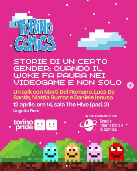 Anche quest’anno il Torino Pride parteciperà al Torino Comics, la fiera del fumetto e del mondo nerd al Lingotto Fiere dall’11 al 13 aprile. Per l’occasione, in collaborazione con SCUOLA INTERNAZIONALE DI COMICS di Torino, sabato 12 aprile alle ore 12, in Sala The Hive nel padiglione 2 verrà organizzato un importante panel intitolato STORIE DI UN CERTO GENDER: QUANDO IL WOKE FA PAURA NEI VIDEOGAME E NON SOLO.