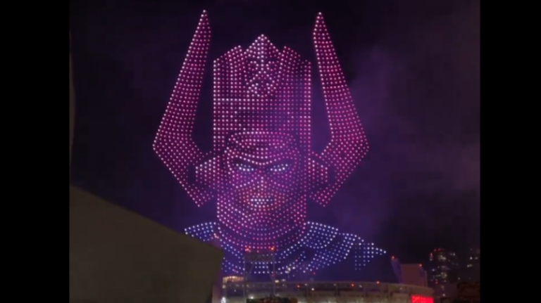 I Marvel Studios hanno illuminato il cielo di San Diego con uno spettacolo di droni con i Fantastici Quattro e Galactus. Un panel dedicato a Deadpool & Wolverine ha chiuso la prima notte del San Diego Comic-Con, dove si è tenuta una proiezione speciale del film. In seguito, il presidente dei Marvel Studios Kevin Feige ha chiesto al pubblico della Hall H di prestare attenzione al cielo sopra il Petco Park, dove uno speciale spettacolo di droni ha anticipato il panel della Hall H dei Marvel Studios di sabato sera. Anche se non è stato confermato nulla, è molto probabile che i fan possano incontrare il cast de I Fantastici Quattro del 2025. Gli account dei social media Marvel hanno condiviso un video di diversi droni che formano la testa di Galactus, che sarà interpretato da Ralph Ineson ne I Fantastici Quattro. La testa di Galactus si alza lentamente sopra il Petco Park, mentre una musica inquietante fa da sottofondo. Si tratta di un’immagine accurata di Galactus nei fumetti, che è drasticamente diversa dalla gigantesca nube temporalesca viola apparsa in I Fantastici 4 e Silver Surfer del 2007. Dopo la presentazione di Galactus, i droni si separano e si riformano per creare il logo dei Fantastici Quattro. Il logo è evidenziato in modo simile a quello di Johnny Storm / La Torcia Umana nel materiale promozionale.