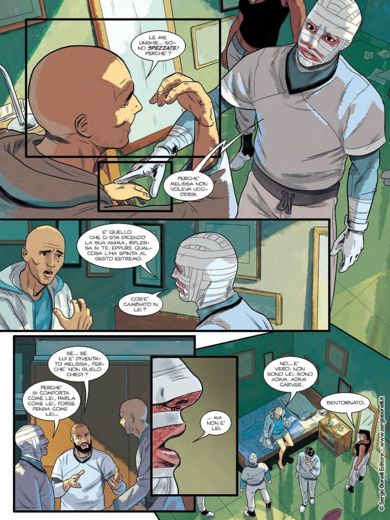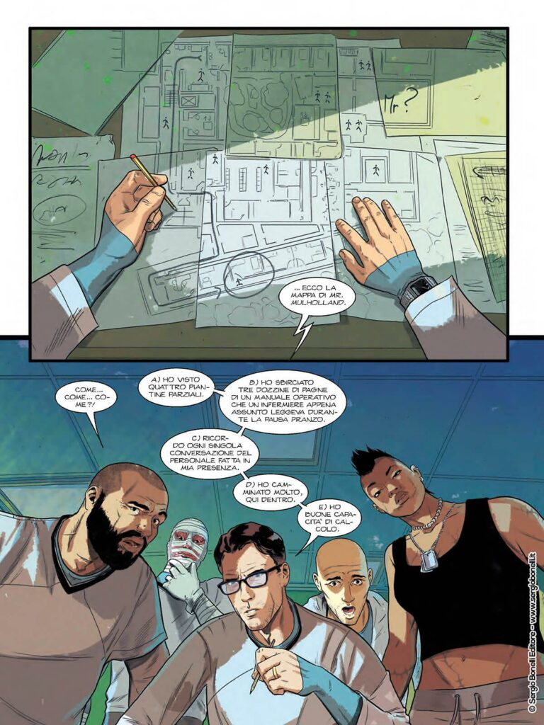 Tra il thriller, il crime e la spy story, MR. EVIDENCE, che arriva oggi al suo secondo episodio con “Il quinto uomo”, è un racconto forte, un fumetto distopico creato da Adriano Barone e Fabio Guaglione vicino a certe atmosfere dei comics americani più adulti, un viaggio in luoghi inesplorati della mente.