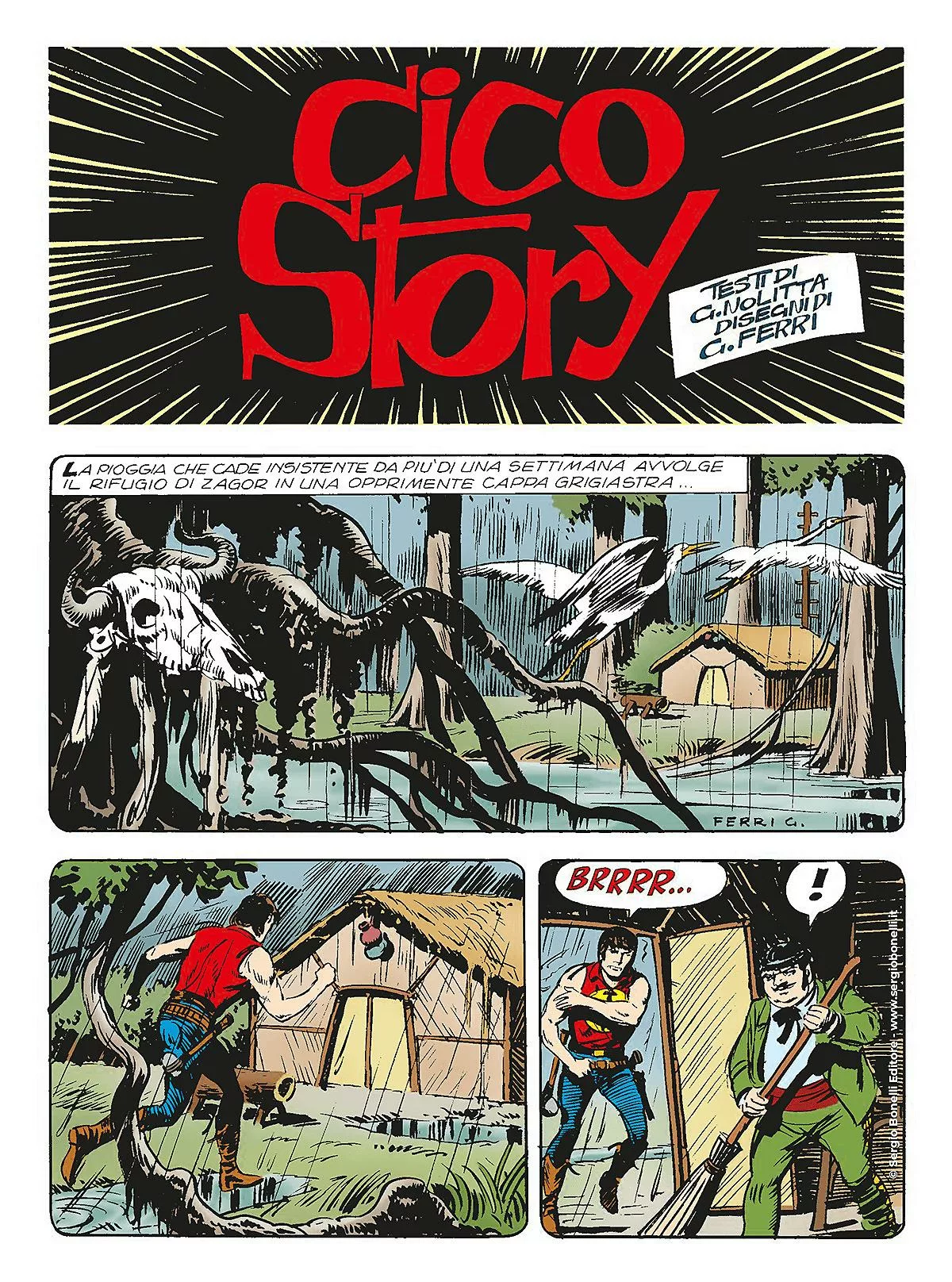 In CICO STORY, scritto da Guido Nolitta e disegnato da Gallieno Ferri, scopriamo così che il panciuto messicano è nato a Veracruz e ha affrontato un’interminabile serie di lavori diversi, prima di diventare il fedelissimo pard dello Spirito con la Scure…