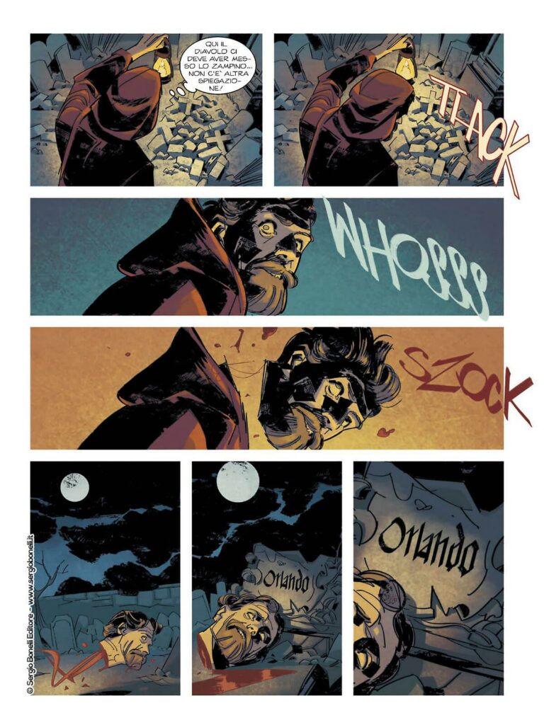 È questa la trama de IL FURIOSO ORLANDO, terzo volume della serie Sergio Bonelli Editore de LA DIVINA CONGREGA. Ai testi due dei migliori sceneggiatori della nuova generazione, Marco Nucci, ormai una presenza costante sulle pagine di Topolino, e Giulio Antonio Gualtieri, noto anche ai lettori di Dampyr; a firmare disegni, copertina e colori sono invece Alessio Petillo, Simone Pace, Matteo Spirito e Valeria De Sanctis.