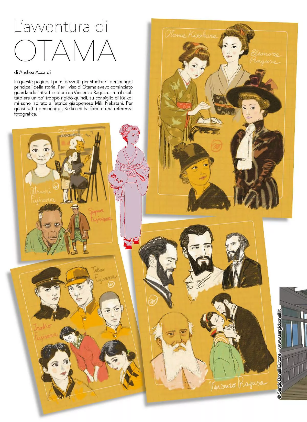 Racconta Andrea Accardi: “Ho scoperto Otama alla Civica Galleria di Arte Moderna di Palermo, ammirando il suo busto in terracotta scolpito da Vincenzo Ragusa. La didascalia recitava: Ritratto della moglie. Chi mai poteva essere la moglie di questo scultore palermitano, dai tratti somatici e dall’inconfondibile acconciatura giapponese? Sarebbero passati molti anni prima che questa curiosità si trasformasse nell’intenzione di farne un libro, finché, a un certo punto, ho proposto a Keiko di realizzare con lei la storia di Otama. Mi sembrava il connubio perfetto: un disegnatore italiano nato a Palermo e una sceneggiatrice giapponese che vive da anni in Italia (e sposata con un italiano). Così è cominciata la nostra avventura”.