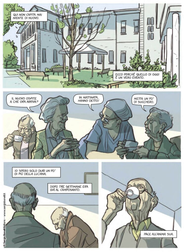 Dal disegnatore di 10 Ottobre, arriva RIFLESSO PERFETTO, una nuova, affascinante graphic novel, un’avventura intima e delicata nell’universo dei sentimenti e della memoria. Mattia Surroz ci racconta come nella quiete un po’ stantia della casa di riposo, Enea si consuma lentamente nel rimpianto di un amore mai realizzato. Un legame “proibito”, soffocato dalla paura di vivere e dallo sguardo di un mondo ostile. Ora, però, ritrova nel suo stesso rifugio il compagno che avrebbe voluto accanto a sé. È forse l’occasione per ritrovare un po’ di quella felicità che, nei lunghi anni della vita, non è stata che un sogno dentro un sogno…