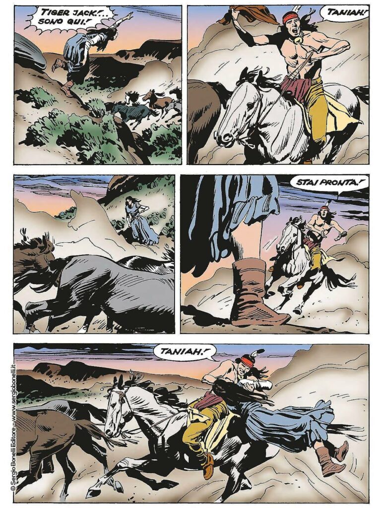 I trafficanti di schiavi hanno rapito delle giovani donne dalla tribù navajo del capo Orso Giallo… Una di loro, la bella Taniah, è la promessa sposa di Tiger Jack! Tex racconta il primo incontro con il suo fratello indiano e la drammatica pista di sangue che insieme li condusse nel cuore dei Monti Sacramento a caccia dello spietato Don Liborio Torres…
