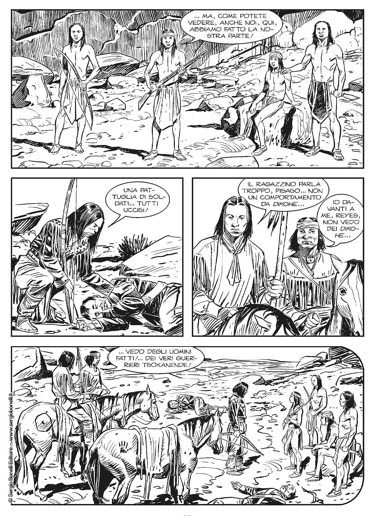 Come racconta al giovane figlio Tahzay, Cochise è cresciuto tra guerre e massacri, dimostrando il proprio valore, ma acquistando saggezza. Ora desidera solo la pace e il suo unico rimpianto è quello di non aver mai potuto vendicare il padre, vilmente assassinato da un traditore. Mentre, all’insaputa di Cochise, un gioco beffardo del destino sta per trascinare i Chiricahuas nella loro prima grande guerra contro gli Stati Uniti, Tex s’imbatte nella pista di un misterioso assassino…