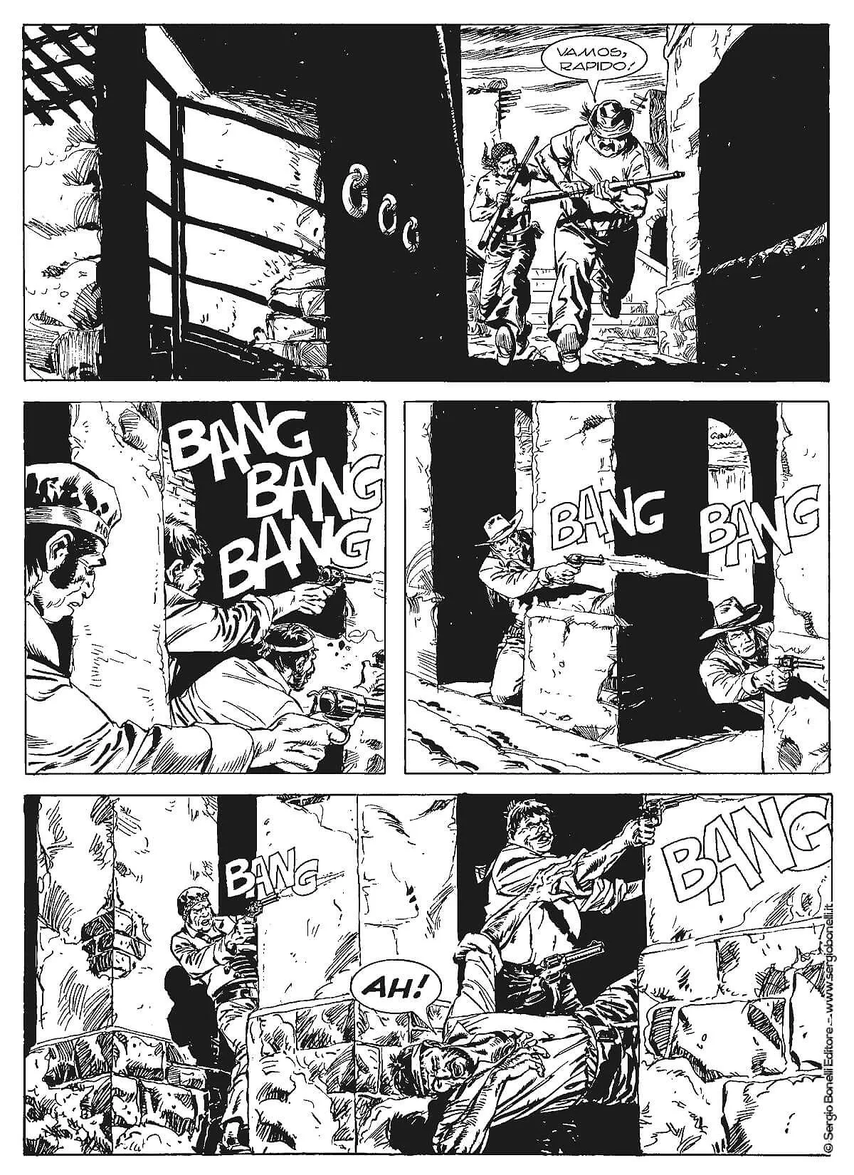 Sulle montagne del Nevada, invece, alcuni banditi fanno deragliare un treno per rapinare le paghe destinate all’esercito, ma non hanno considerato la possibilità di trovare una inoppugnabile resistenza. Si troveranno così a dover fare i conti con l’ira di Tex!
