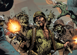 Campbell reinterpreta in chiave moderna il Sgt. Rock donandogli nuova linfa, rendendolo un personaggio davvero tagliente e poco politicamente corretto. Sicuro, sprezzante, arrogante e determinato, il Sergente ha un chiodo fisso, porre fine ad ogni costo alla guerra, fosse anche compiendo l’estremo sacrificio. Fantastici i rapporti tra lui e la sua compagnia, con cui si crea un cameratismo e una complicità davvero ben gestite. Ma a rubare la scena è sempre il protagonista indiscusso, che raggiunge il massimo dell’arroganza nello scontro finale con Hitler. La storia corre veloce in un crescendo di adrenalina e sangue che sembra uscire da ogni pagina. Ci si prende sicuramente gioco dei film di guerra con i nazisti, ma soprattuto di questi ultimi, che trasformati in zombi vengono totalmente disumanizzati, lasciando spazio alla satira e al black humor.