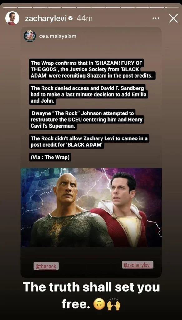 Secondo quanto riportato, Dwayne Johnson non solo ha messo il veto per la comparsa dei membri della Justice Society in Shazam 2, ma ha anche respinto un cameo di Zachary Levi nella scena post-credits di Black Adam.