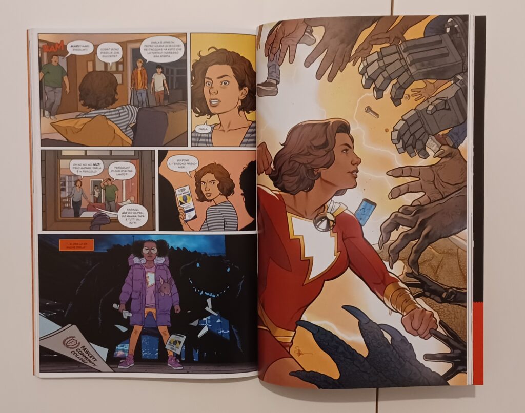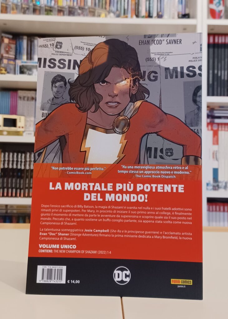 La protagonista di questo volume edito da Panini Comics, Mary Bromfield, ha una storia editoriale lunghissima alle spalle, ma grazie ai brillanti testi di Josie Campbell e alle splendide tavole di Evan Shaner, non sarà difficile immergersi in questa storia anche se non si è letto nulla prima. Mary è stata creata nel 1943 da Otto Binder e Marc Swayze sulle pagine di Captain Marvel Adventures 18, ma tutto ciò che c’è da sapere per leggere questo volume è che il precedente custode dei poteri del mago Shazam!, Billy Batson, non è più disponibile e la sorella adottiva Mary è destinata a succedergli nella lotta al crimine.