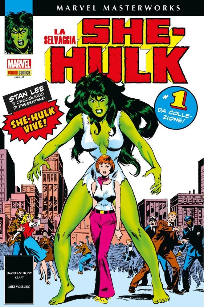 Per chi volesse recuperare direttamente dal 1980 le storie con protagonista la Gigantessa di Giada, il Marvel Masterworks La Selvaggia She-Hulk 1 raccoglie le sue origini e le prime avventure a fumetti a lei dedicate, in ordine cronologico. Ferita a morte da un proiettile, l’avvocato Jennifer Walters sopravvive solo grazie a una trasfusione di sangue di suo cugino… Bruce Banner, alias l’Incredibile Hulk! Da quel giorno Jennifer ha combattuto il crimine su due fronti: nelle aule di tribunale e come super eroina nei panni di She-Hulk.