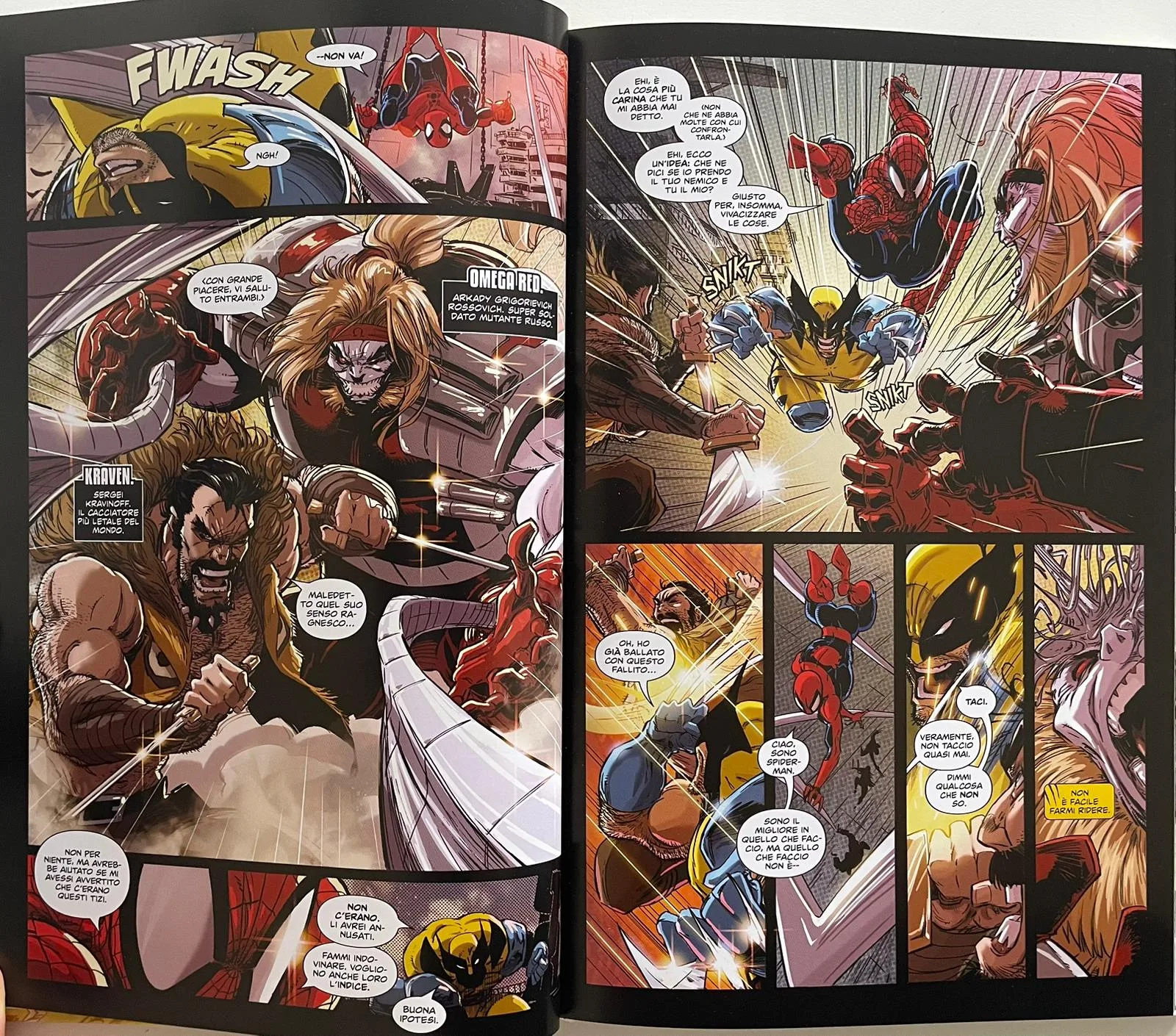 Marc Guggenheim è partito da questi elementi per costruire un racconto che richiama la storia dei due protagonisti, aggiungendo un plot twist che li mette di fronte a una direzione inaspettata. Lo scrittore ha lavorato tante volte con questi personaggi nel corso della sua carriera e dimostra di conoscerli molto bene. Le interazioni tra Spider-Man e Wolverine risultano sempre verosimili, l’amalgama che si crea tra l’ironia di Peter e la ferocia di Logan è perfetta, e nel corso dei primi cinque numeri il loro rapporto si evolve continuamente in un susseguirsi di scene frenetiche e di grande azione.
