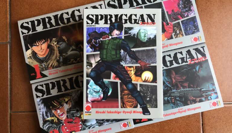 Se siete alla ricerca di una serie un po’ vintage ma ricca di avventura, appassionante e anche leggera, ma non banale, vi consiglio da dare una chance a Spriggan. Personalmente era un titolo che volevo recuperare da tempo e questa edizione è davvero ben fatta. Vi segnalo che ogni volume ha sempre le prime pagine in bicromia e, se comprate il cofanetto, avrete anche alcune cartoline in omaggio.