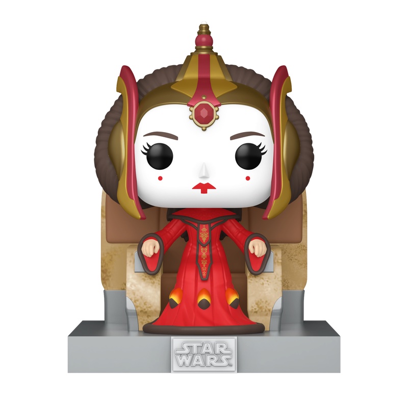 La giovane regina Amidala sarà immediatamente messa alla prova appena salita al trono a causa dell’attacco a Naboo da parte della Federazione dei Mercanti. Per celebrare il personaggio c’è il Funko Pop! Deluxe Queen Amidala on throne! La figura in vinile è alta circa 11,8 cm.