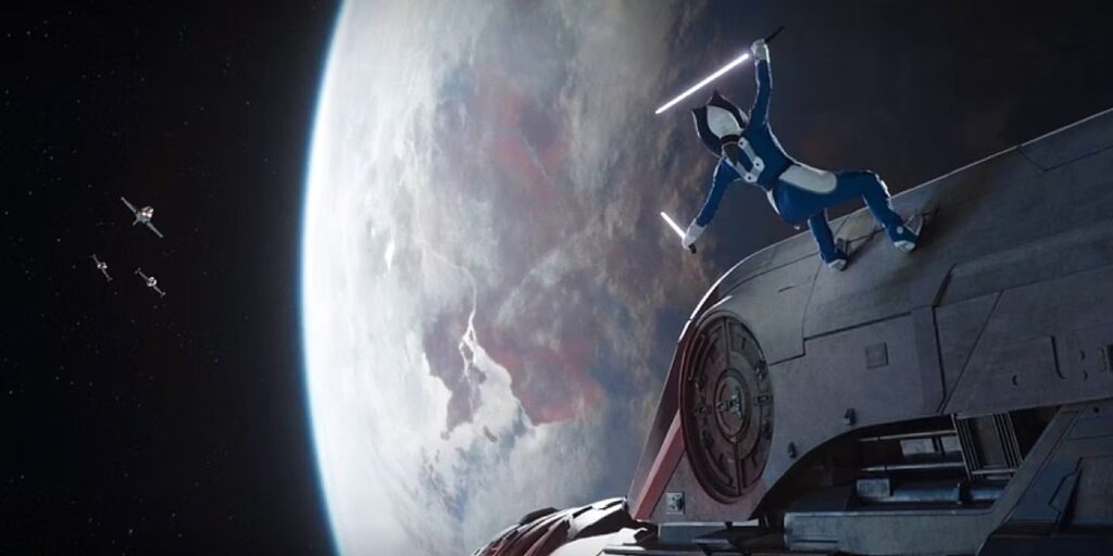 Le passeggiate nello spazio, o “skywalk”, in Star Wars sono una gioia per gli occhi. Non solo sono sempre di natura cinematografica grazie all’ambiente in cui si svolgono, ma sono spesso usate come ultima risorsa, un mezzo per assicurarsi la vittoria contro ogni probabilità, conferendo a queste scene profondità e tensione. In Star Wars Rebels, stagione 3, episodio 21, “Ora zero: Parte 2”, ad esempio, Ezra Bridger – il giovane Jedi scomparso che Ahsoka e Sabine stanno cercando in Ahsoka – guida un gruppo di Mandaloriani in una passeggiata spaziale per abbattere una nave spaziale imperiale. Finora, però, i Jedi in carne e ossa non sono stati in grado di mostrare le loro abilità nelle passeggiate spaziali, fino ad ora.