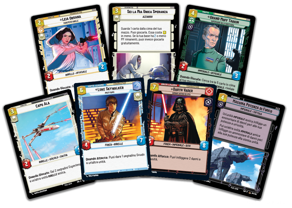 Star Wars: Unlimited offre un’esperienza di gioco unica a ogni partita. I giocatori hanno l’autonomia di comporre mazzi che si adattano al loro stile di gioco, con carte che offrono azioni e strategie distinte. Le partite si svolgono in diverse ambientazioni, tra cui arene terrestri e spaziali, garantendo un’esperienza di gioco avvincente e avventurosa. Le carte, con nuove immagini esclusive, affascineranno i giocatori e renderanno omaggio alla ricca eredità della galassia di Star Wars.